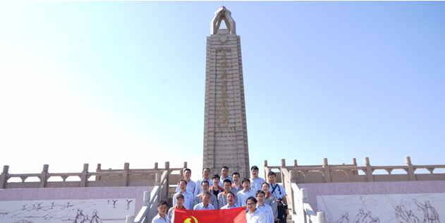 “我志愿加入中國共產(chǎn)黨……隨時準備為黨和人民犧牲一切,永不叛黨。”在紀念碑下黨員們面對黨旗,胸帶黨徽,莊嚴地舉起右手,重溫了入黨誓詞,進一步領(lǐng)悟了黨員的責(zé)任與使命。